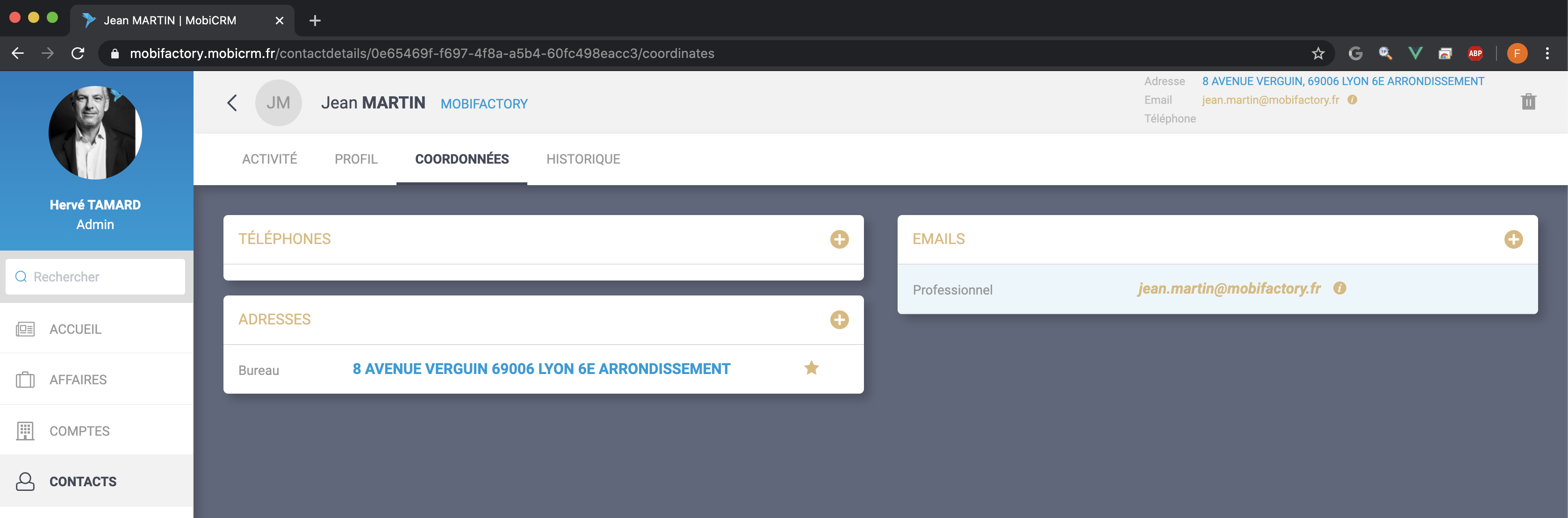 Le mail suggéré sera : ht@mobifactory.fr