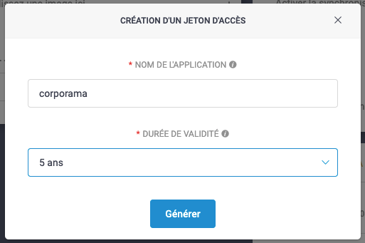 Pour cela, il suffit de fournir un jeton d'accès à votre interlocuteur Corporama.