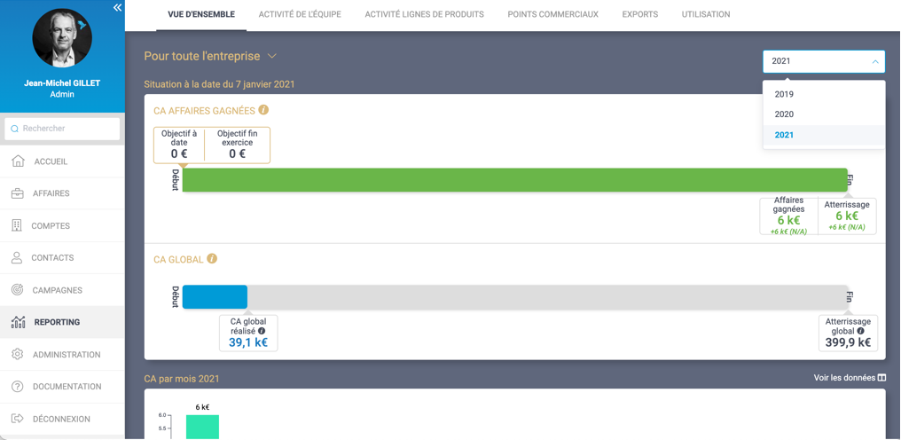 Dans les objectifs des commerciaux, vous pouvez consulter les objectifs des commerciaux des années précédentes.