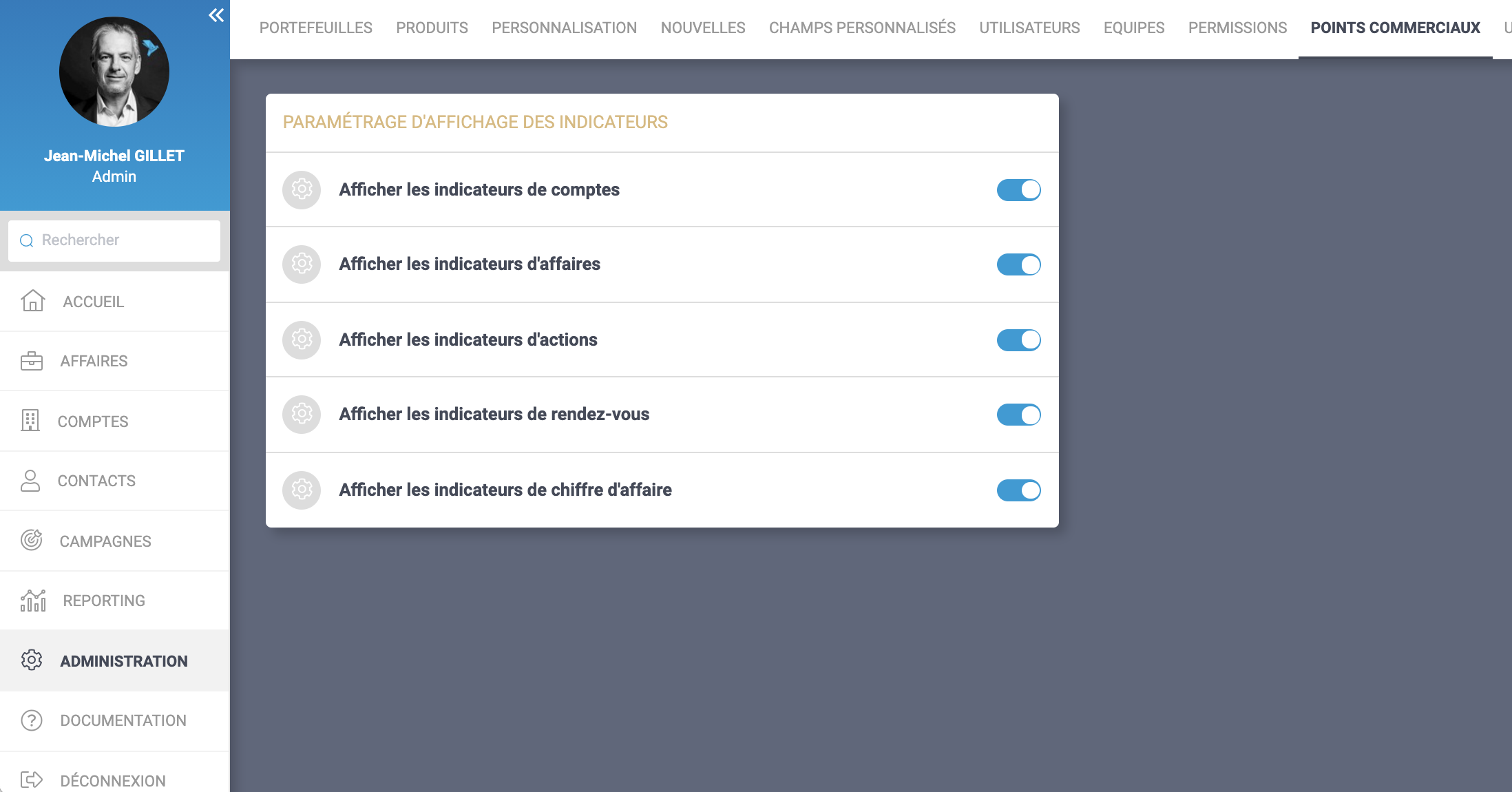 - Des nouveaux indicateurs apparaissent dans le point commercial (que vous pouvez décider ou non d’afficher dans le menu « Administration » ).