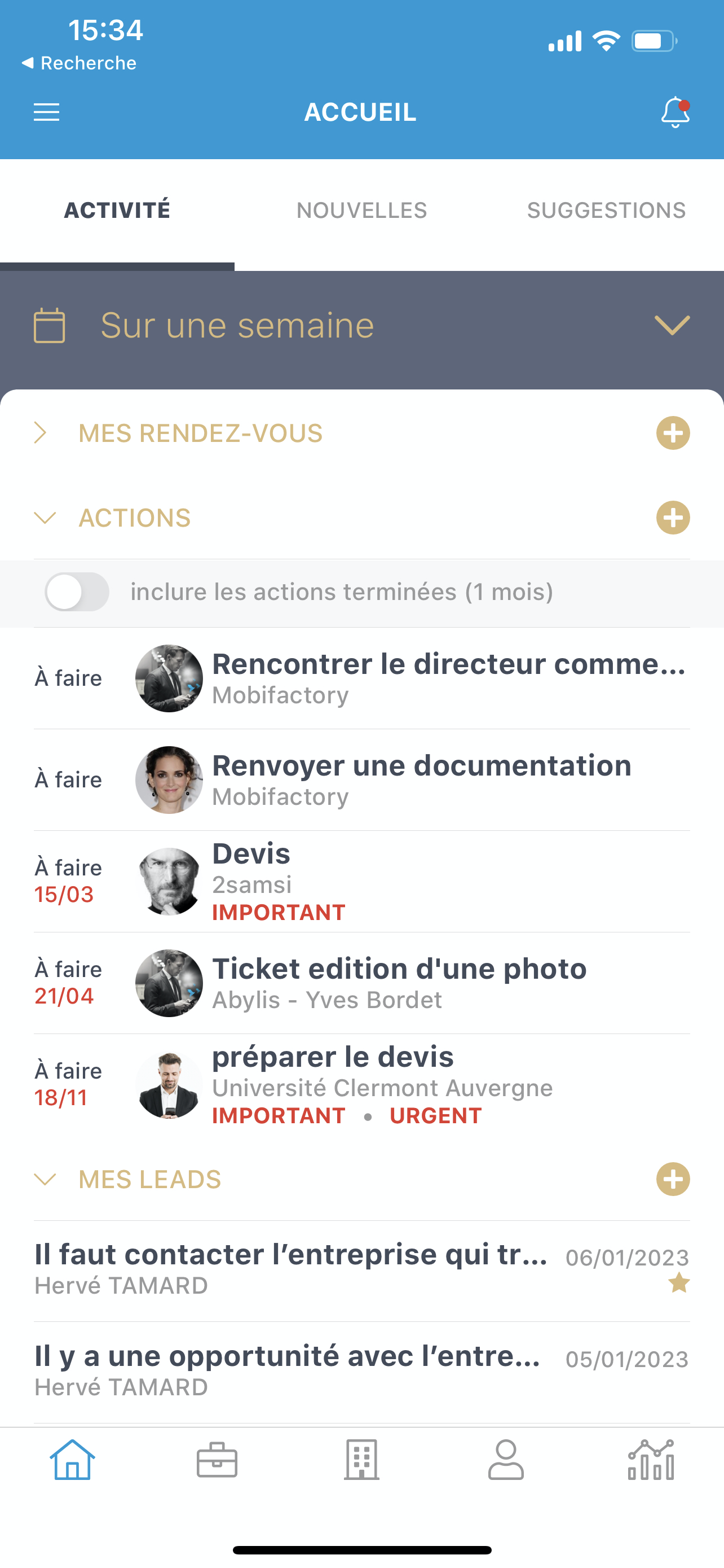 - Les pliés/dépliées sur les dates, les actions, les leads de la page d’accueil.