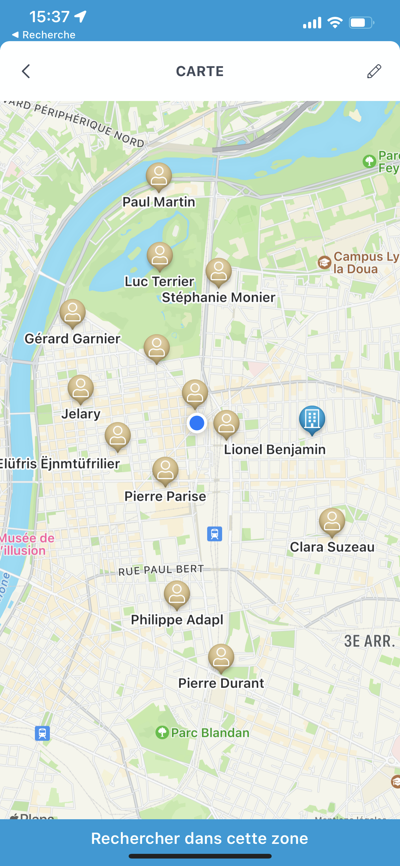 - Les options d’affichage de la carte (Clients, prospects, contacts, entreprises Insee…).