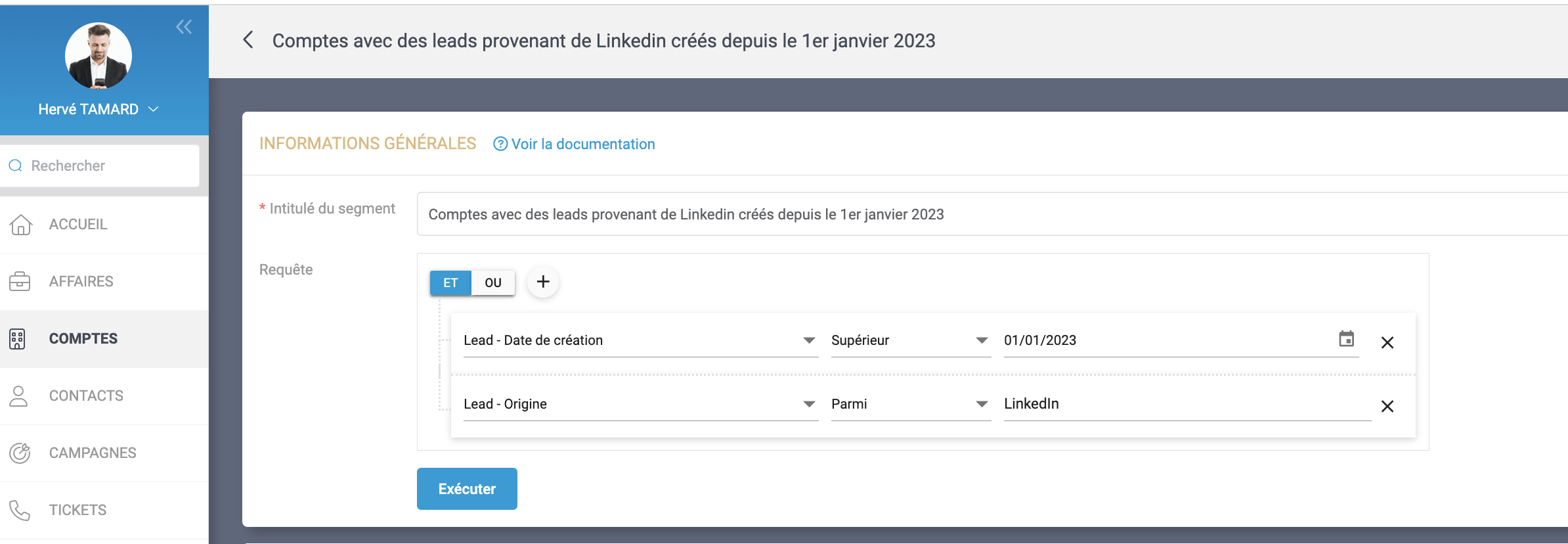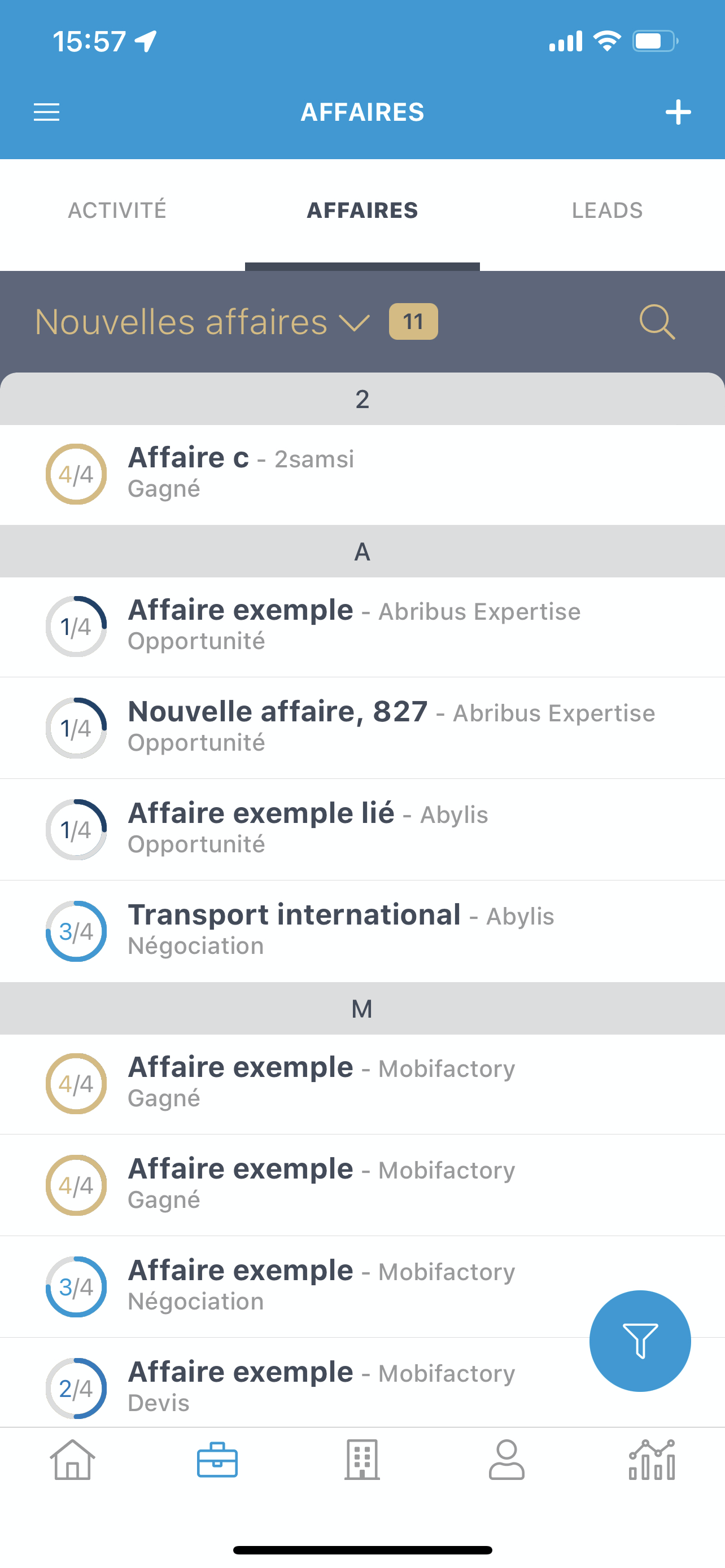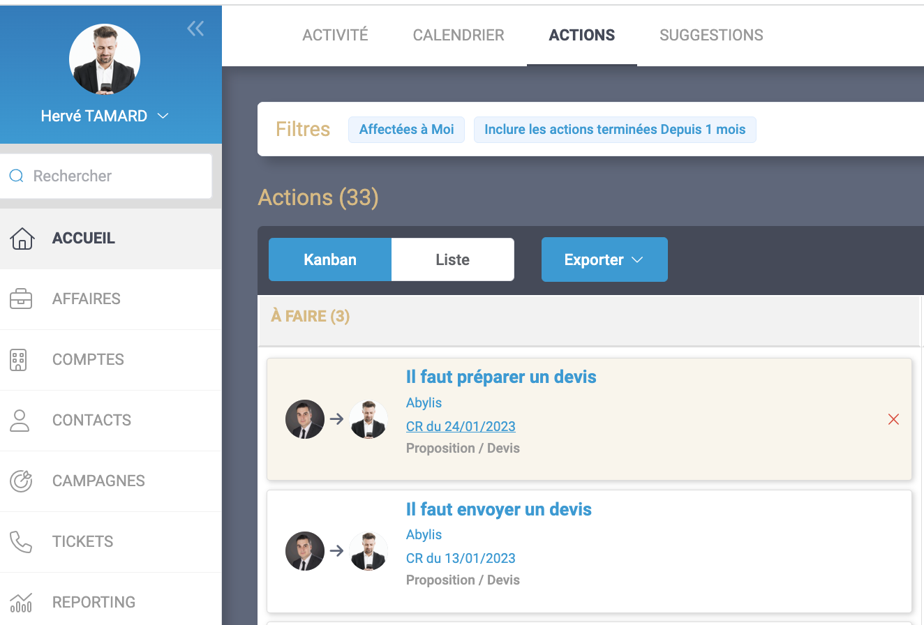 - Les filtres sur les listes, que ce soient sur les comptes, les affaires, les leads, le reporting.
