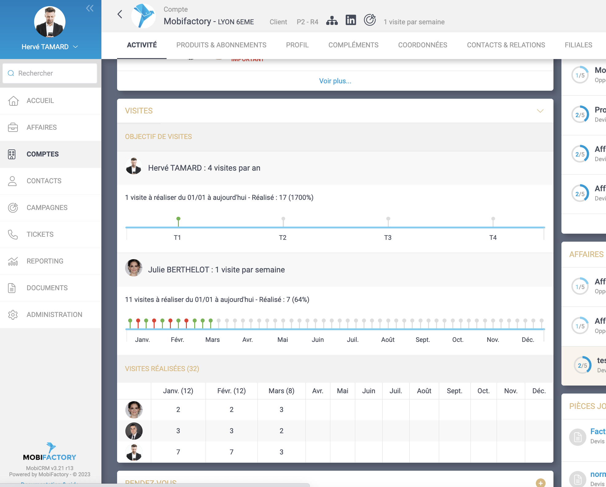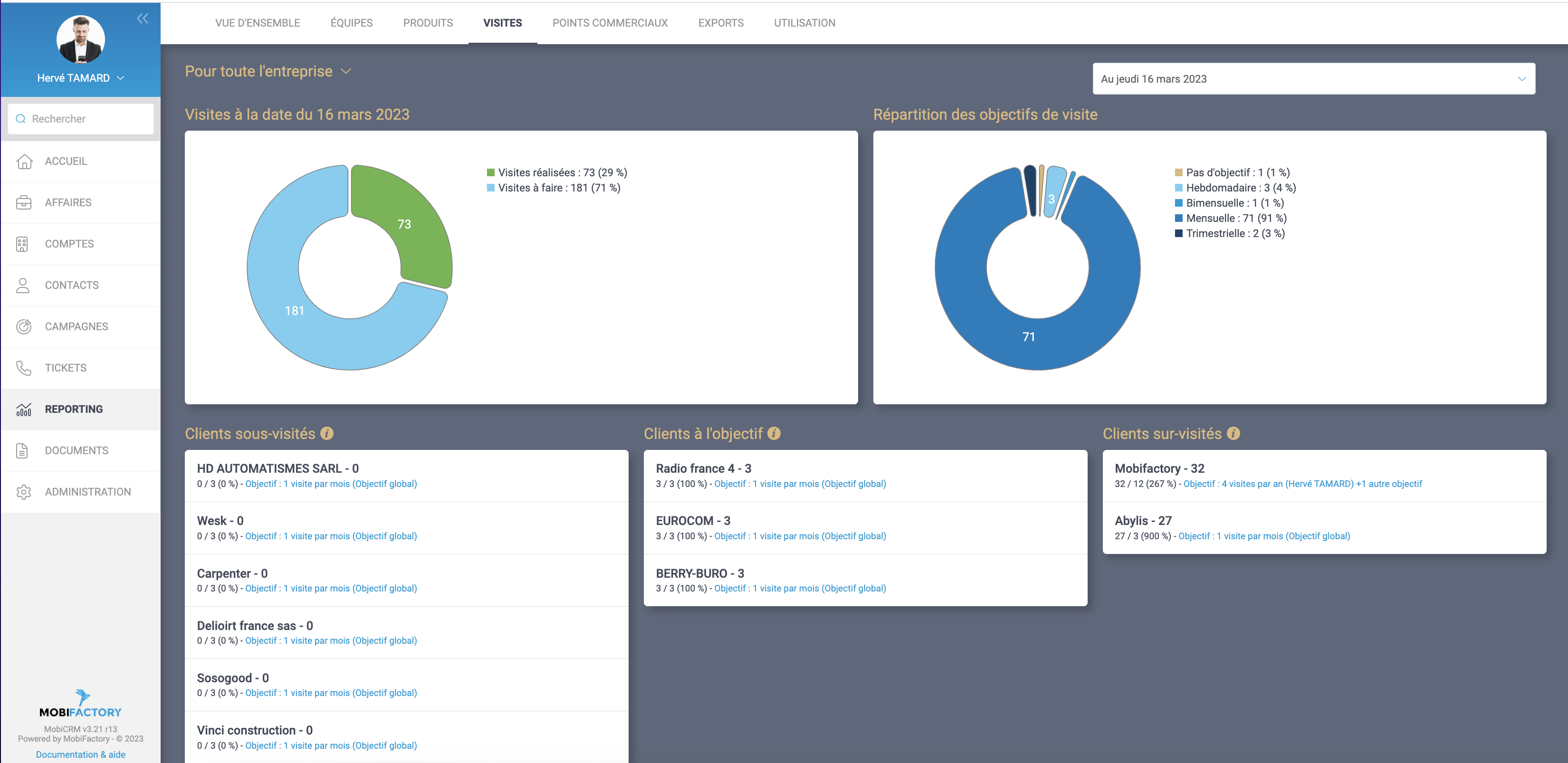 Le nouveau reporting des visites présente maintenant plus clairement les clients sous-visités, à l’objectif, ou sur-visités à date. On a pris des marges de manœuvre pour intégrer les congés, les formations…
