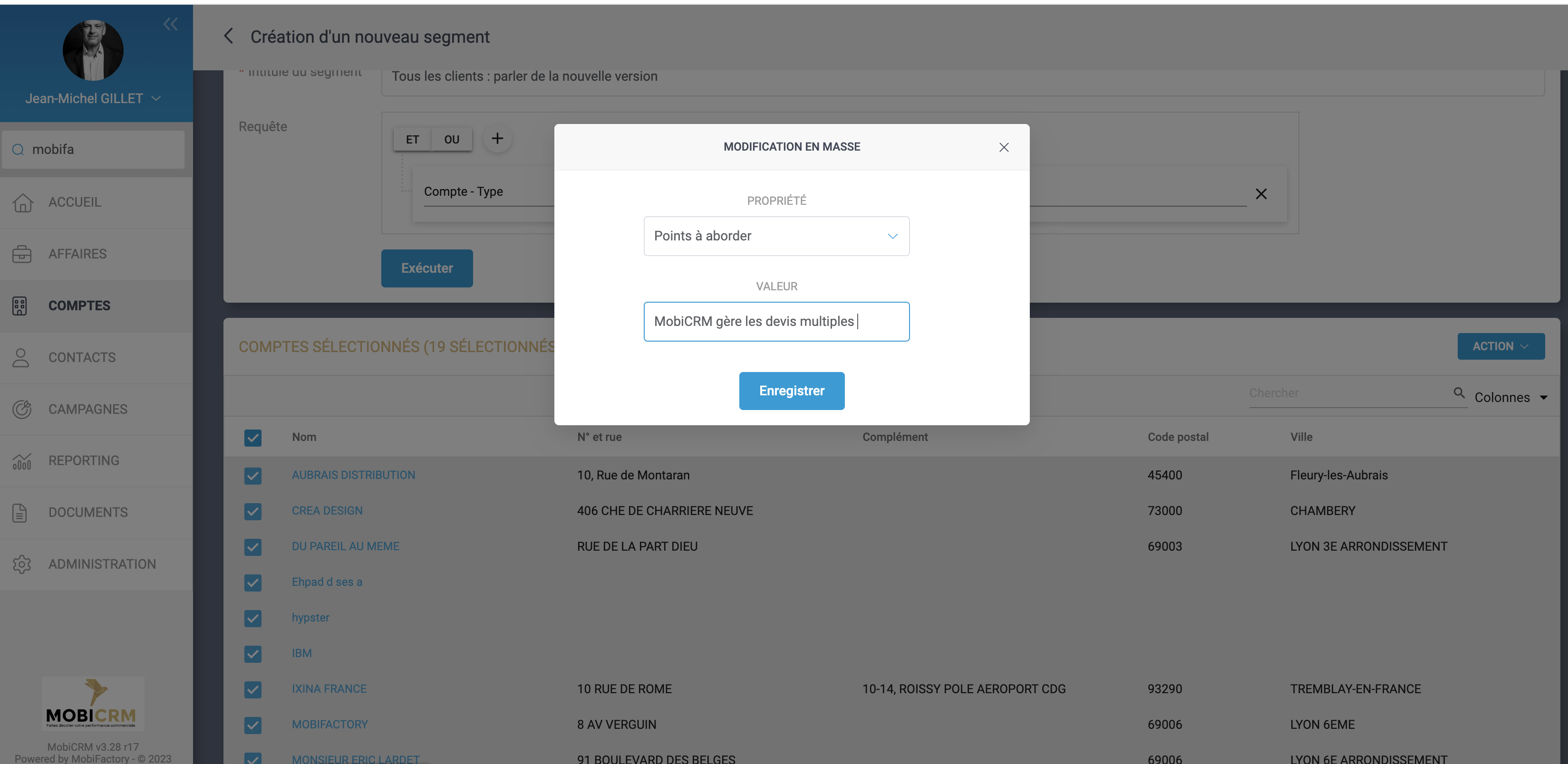 Vous pouvez le faire en masse dans la segmentation si vous voulez que ce point soit abordé chez tous ou sur une sélection de client.