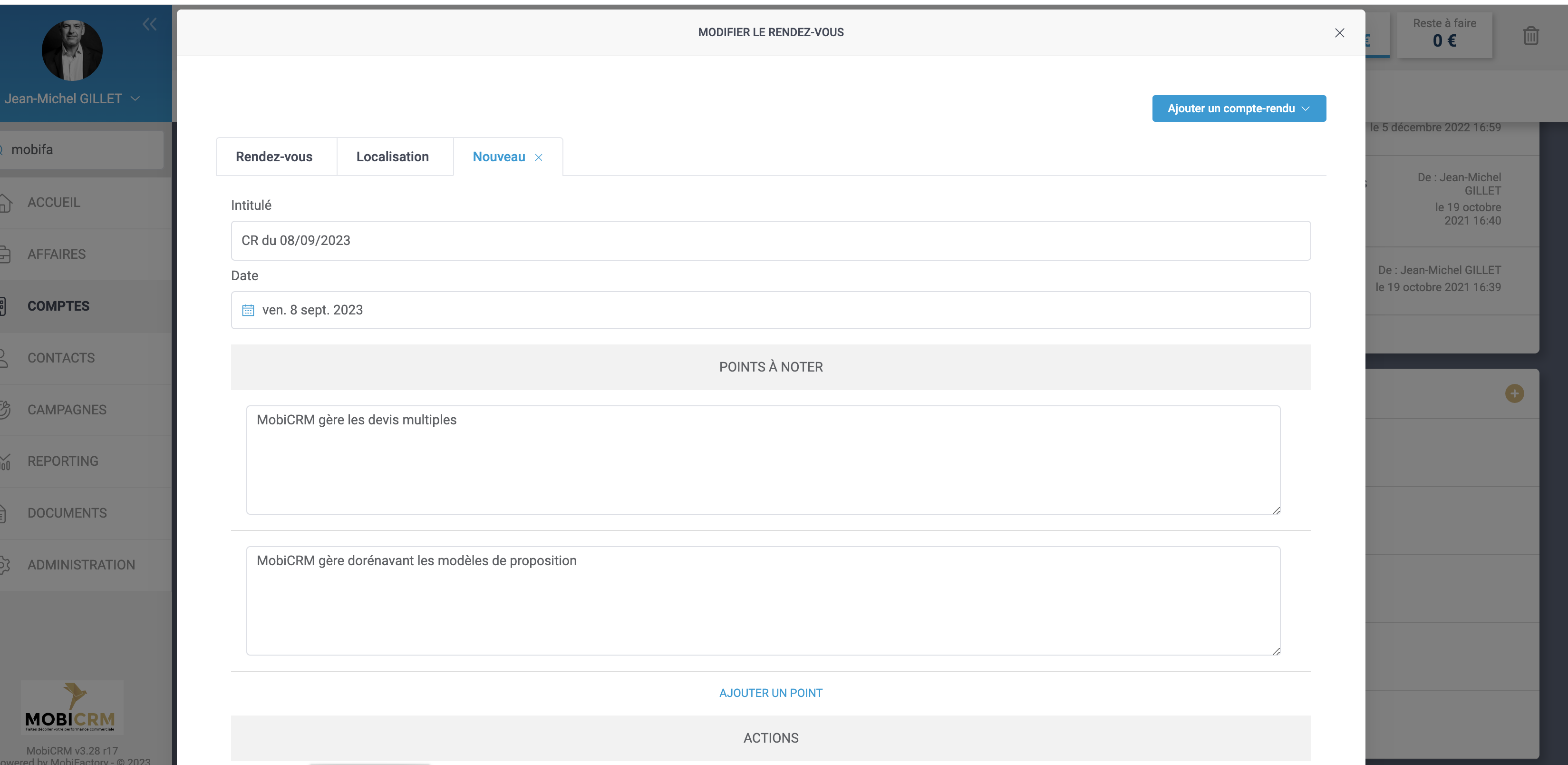 Lors de la prise de rdv, sont affichés tous les points à aborder non traités. Vous choisissez d’en parler ou non.