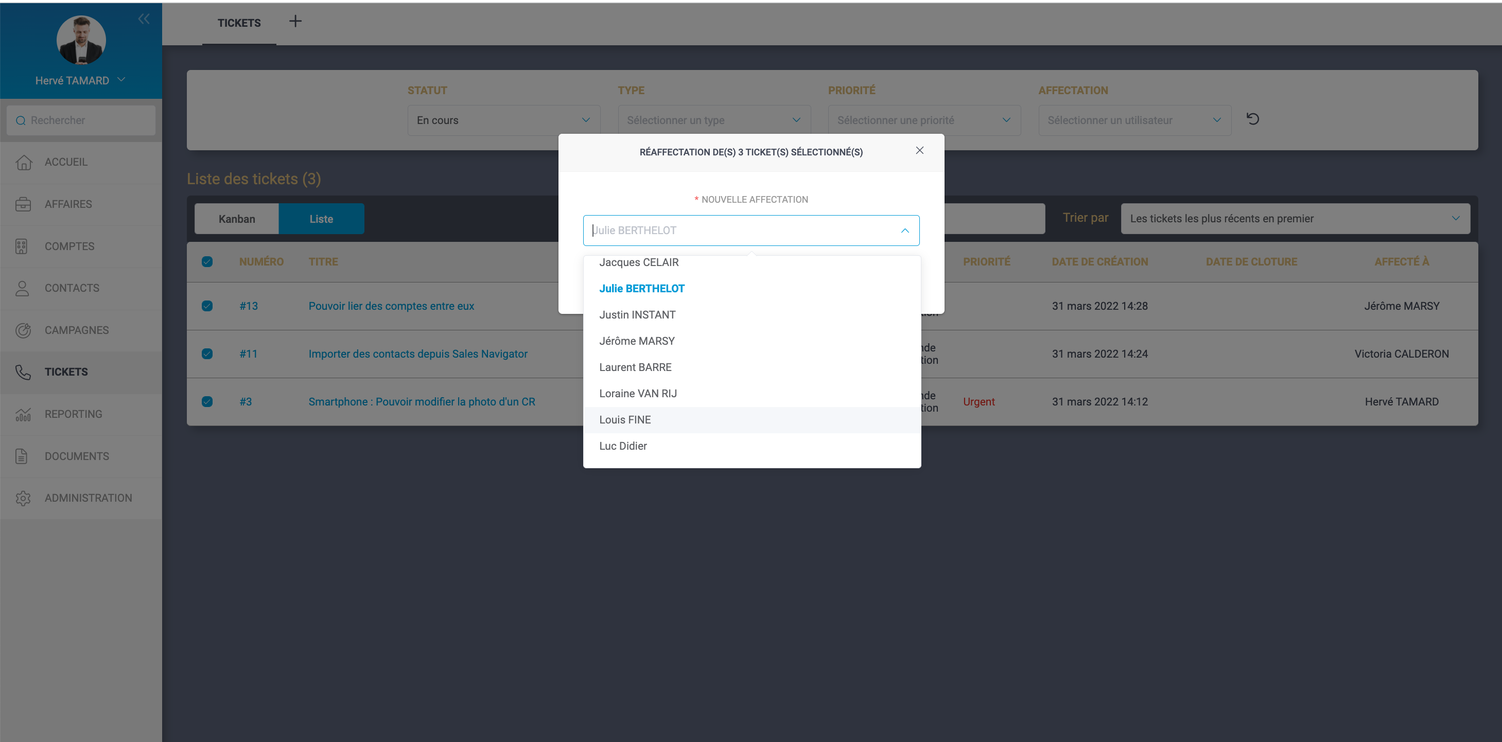 - Vous pouvez assigner un ticket à un collaborateur en créant une action.