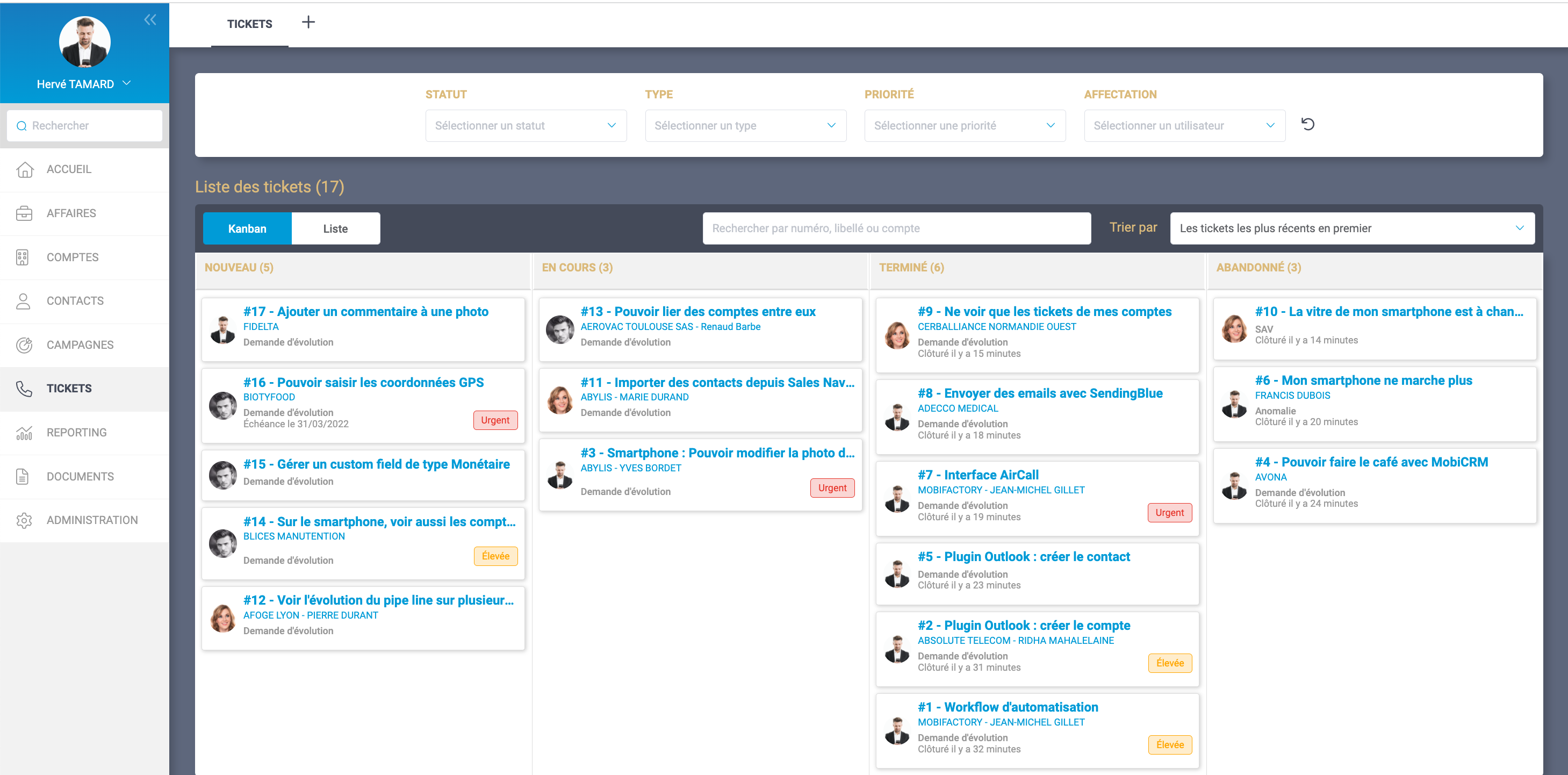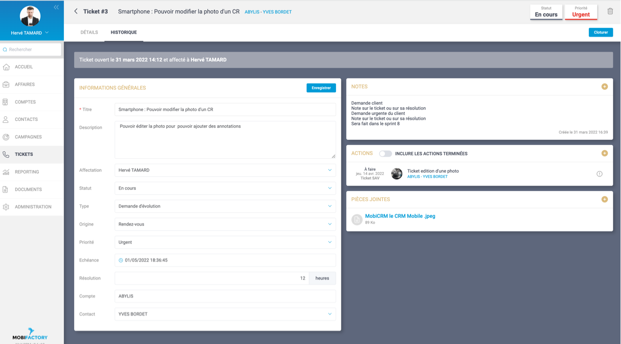 - Il permet de suivre les tickets, de voir dans le 360 client les tickets en cours ou résolus.