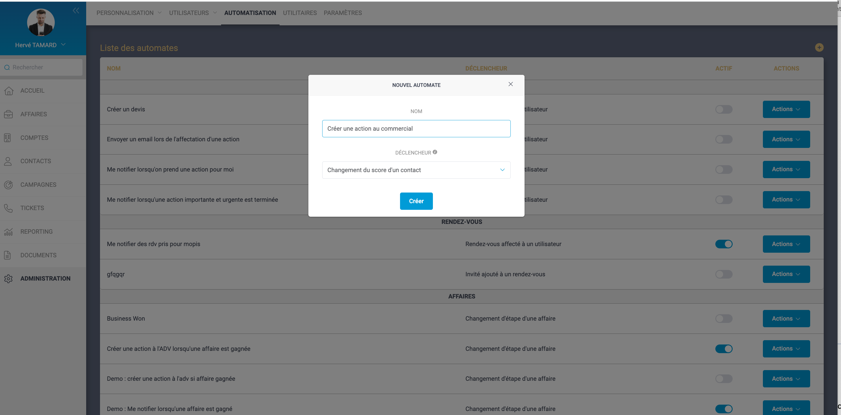 Automatisation : créer automatiquement une action au commercial